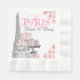 Sabonetes de festa de aniversário doce em Paris, com bonito flores cor-de-rosa e elegante roteiro em Paris, Torre Elegante Eiffel, presentes cor-de-rosa e cinza e fundo de calçado de salto alto. Você pode adicionar texto para personalizar esses guardanapos de festa de aniversário de Paris, e você pode mudar a cor de fundo.