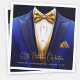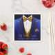 Guardanapos de papel para festa de aniversário azul royal e dourado com smoking azul, gravata borboleta dourada, colete dourado e lenço de bolso dourado. Estes guardanapos para festa de aniversário azul royal e dourado são facilmente personalizados para o seu evento, alterando o texto conforme necessário. Estes guardanapos de papel estilo smoking são ótimos para eventos corporativos, aposentadorias, despedidas de solteiro e qualquer evento formal de gala. Adicione seu texto, logotipo, imagens, etc., para personalizar.