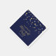 Este guardanapo personalizado adicionará um detalhe elegante ao seu dia especial. O design apresenta confetes em forma de hexágono e uma fonte de letra dourada chic. Perfeito para decoração de festa de aposentadoria moderna em dourado e azul marinho. Convites e papelarias correspondentes estão disponíveis na minha loja BaraBomDesign.