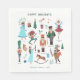 Um balé festivo do Nutcracker festivo, crianças, para um clássico tema de Natal, com personagens pintados à mão como rei de rato, Clara, soldado e padrão de bailarina em toda a impressão. Arte original de Caroline Bonne Müller.