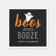 Os guardanapos modernos e bonitos do festival "Boos e Booze" do Halloween apresentam texto em laranja, cinzas de carvão e letras brancas com um pequeno sotaque fantasma.