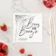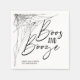 Use guardanapos personalizados para sua festa de Halloween. O cartão apresenta o texto "boos e bebida" em uma fonte manuscrita com teias de aranha como borda.