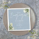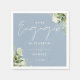 Este guardanapo de festa de compromisso floral verde musgo azul empoeirado elegante pode ser personalizado com suas informações em tipografia sofisticada. Criado por Thisisnotme©