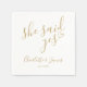 Este guardanapo de festa de noivado dourado e elegante "ela disse sim" pode ser personalizado com os detalhes da sua festa de noivado. Projetado por Thisisnotme©