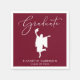Guardanapos vermelhos de burgundy personalizados para a sua festa de festa de formatura com ilustração de um formando fêmea celebrando em seu boné e vestido, "Formando" em um roteiro elegante e seu nome e ano de aula em uma simples tipografia branca.