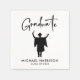 Guardanapos personalizados, pretos e brancos, para a sua festa de festa de formatura, com uma ilustração da silhueta de um formando macho que comemora em seu boné e vestido, "Formando" em uma escrita moderna e seu nome e ano de aula em uma simples tipografia.
