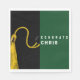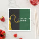 Design de guardanapos criativos de festa de formatura com boné preto clássico e ouro sobre fundo verde para o formando. Editar texto para adicionar seu nome.