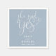Este guardanapo de festa de noivado com o texto "Ela disse sim" em elegante letra cursiva azul poeira pode ser personalizado com todos os seus nomes e data especial. Criado por Thisisnotme©