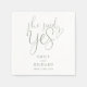 Este guardanapo de festa de noivado "Ela disse sim" em verde oliva elegante e script pode ser personalizado com seus nomes e data especial. Projetado por Thisisnotme©