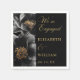 Esses elegantes guardanapos de papel festa de noivado floral preto e ouro podem ser personalizados com suas informações na tipografia moderna. Projetado por Thisnotme©