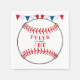 Primeiro aniversario Napkin do Baseball Sports / guardanapos de festas de aniversário bonitos para uma festa de primeiro aniversario num tema de beisebol. O design tem bandeiras de baseball e bunting em cores vermelha, branca e azul. Personalize este guardanapo de festa de aniversário com o nome da criança.