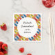O padrão divertido que decora esse guardanapo de papel fácil de personalizar apresenta chinelos em tons primários de vermelho, azul e amarelo alinhados contra listras coloridas de areia, um design perfeito para uma festa de piscina ou praia.