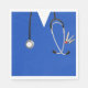 Guardanapos de temas médicos para festa de formatura médica, aniversário ou outra celebração. Design apresenta esfregões de hospital azul com uma faca engraçada do exército suíço no bolso.