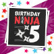 Esta design de aniversário Ninja 5 é perfeita para um tema de festa de aniversário ninja de 5 anos. Apresenta símbolo japonês para Ninjutsu com o cartoon ninja jogando estrelas o aniversariante ou garota vai amar! Este design de aniversário ninja para meninos e meninas é divertido para uma criança de 5 anos que gosta de ninjas, karatê, taekwondo, judô ou outras artes marciais.