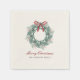 Classic style Christmas party napkins featuring festive Christmas wreath with personalized family name.