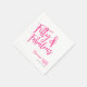 Fifty and Fabulous script minimal pink modern name date 50th birthday napkin that you can personalize for your fiftieth birthday party celebration. The words "Fifty and Fabulous" are set using popular typography. The text colors can be changed using the edit menu.