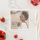 Minimal modern Fifty and Fabulous photo overlay black text 50th birthday napkin that you can personalize and lay out at your fiftieth birthday party celebration. The words "Fifty and Fabulous" are set using trending font typography. The opacity of your uploaded photo and the text colors can be changed using the edit menu.