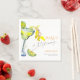 O guardanapo de despedida de solteira apresenta um vibrante copo de margarita em aquarela e uma fatia de limão à esquerda, capturando perfeitamente o tema "Margs & Matrimony". O design adota um estilo minimalista, com sotaques coloridos que equilibram diversão e elegância, refletindo o tom comemorativo do evento.