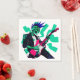 Um esqueleto robótico com um mohawk azul estilo punk toca uma guitarra elétrica rosa brilhante que emite ondas de energia elétrica quando tocado. o robô veste uma jaqueta de couro preto.