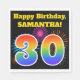Este design de guardanapo de papel vibrante e divertido apresenta um padrão de fogos de artifício comemorativos coloridos inspirados, juntamente com o número "30" com um arco-íris multicolorido como um padrão de gradiente, num fundo preto colorido. Ele também apresenta um nome personalizado e uma mensagem de evento. Os guardanapos de papel como este poderiam talvez ser usados numa festa a ser realizada para celebrar o trigésimo aniversário de alguém. [~Z0000326]
