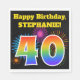 Este design de guardanapo de papel vibrante e divertido apresenta um padrão colorido inspirado em fogos de artifício celebratórios, juntamente com o número "40", tendo um padrão de gradiente inspirado no arco-íris multicolor, sobre um fundo de cor preta. Ele também apresenta um nome personalizado e uma mensagem de evento. Os guardanapos de papel como este poderiam talvez ser usados numa festa a ser realizada para celebrar o quadragésimo aniversário de alguém. [~Z0000326]