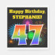 Este design de guardanapo de papel vibrante e divertido apresenta um padrão de fogos de artifício comemorativos coloridos inspirados, junto com o número "47" tendo um padrão multicolorido de inclinação, num fundo preto colorido. Ele também apresenta um nome personalizável e uma mensagem de evento. Os guardanapos de papel como este poderiam talvez ser usados numa festa a ser realizada para celebrar o quarenta e sete anos de alguém. [~Z0000326]