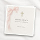 Elegant First Holy Communion napkins featuring a soft pink coquette bow design for a graceful and feminine celebration. Perfect for decorating dessert tables, place settings, and party displays at your daughter special sacrament celebration. Ideal for coordinating with communion invitations and party decor. High quality print.