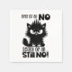A funny, sarcastic black-and-white graphic design showcases a black cat with frazzled fur and a scowling expression. The black handwritten text says, "First of all, no. Second of all, still no!" Available on a wide variety of products, this design makes a perfect gift for cat lovers.