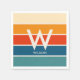 Guardanapos de festa pessoal modernos e tendência com listras largas em cores retrô. Grande monograma centralizado e nome associado. Tipografia minimalista limpa e simples. Totalmente personalizável.