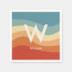 Guardanapos de festa pessoais modernos e elegantes com listras onduladas em cores retrô. Grande monograma centralizado e nome associado. Tipografia minimalista limpa e simples. Totalmente personalizável.