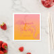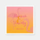 Este guardanapo de papel tropical tem duas silhuetas flamingas muito leves em uma rosa claro e um fundo de gradiente laranja. Há também áreas de texto personalizáveis para os nomes do casal que se casarão e para a data do evento.