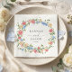 Adicione um toque de jardim romântico à sua celebração com esses guardanapos de casamento com flores silvestres. Com uma delicada grinalda floral em aquarela em tons suaves de rosa, azul e amarelo, esse design atemporal envolve lindamente seus nomes personalizados e data de casamento para um detalhe elegante e personalizado.