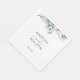 Floral Watercolor Botanical Paper Wedding Napkins. Add a special touch to your big day with this charming blush pink and dusty blue watercolor floral wedding napkin. Adorned with a delicate watercolor floral spray in soft pinks, dusty blue and muted greens, it exudes an ethereal and romantic vibe. The elegant calligraphy script and serif typography exude a simple elegance. This napkin is ideal for couples seeking a vintage-inspired or romantic wedding aesthetic, adding a unique whimsical touch to their wedding day.