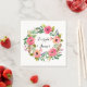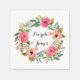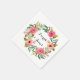 Flores rosa e cor-de-água cor-de-rosa com dabs de pêssegos e creme e um simples pop de lavanda. Folhas verdes e penas bronzeadas e brancas complementam as flores. Design suave, fluente e romântico. Esta simples, mas adorável design de aquarela em um guardanapo é perfeita para seu casamento, aniversário ou outra ocasião especial.