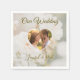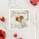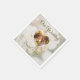 Adicione um toque romântico à mesa do seu casamento com este elegante design de guardanapo de papel. Com um fundo de foto de pétalas de rosa branca sonhadora da Destei, desbotado sob uma sobreposição branca, o design inclui um modelo de foto em forma de coração onde você pode exibir uma foto do casal. Abaixo da área da foto, campos de texto personalizáveis permitem que você inclua os nomes e a data do casamento, tornando este um complemento atencioso e elegante para o conjunto de papelaria do seu casamento. Perfeito para celebrações atemporais e inspiradas em jardins.