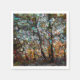 Pintor impressionista de pintura de um nascer do sol visto através de árvores em uma floresta.