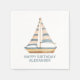 Estes bonitos guardanapos de papel apresentam um belo veleiro a aquarela com listras azuis e creme. Personalize com sua escolha de nome ou texto especial.
