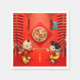 Saudação tradicional chinesa festiva com grilhões, nós sortudos e nuvens auspiciosas + Tigre ouro com papel de Fu cortado em círculo (modelo n°04) + duas crianças bonitinhas para desejar Feliz ano novo. Design no guardanapo de papel da festa. Cartão de saudação padrão, cartão plano quadrado e envelope vermelho. Perfeito para o Ano Novo Chinês do Tigre 2022.