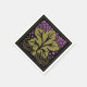 Conjunto de 50 guardanapos de papel de alta qualidade que incluem a adaptação de Leslie Sigal Javorek a um padrão clássico de artesão Americana, com uma grande folha verde de uva solteiro, vinhas com sombreado umber, cercadas por massas de uva em gradientes de orquídeas, todas colocadas em preto para talho dramático. Perfeito para a próxima Festa de Provando de Vinho!