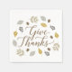 Adicione um pouco de alegria de feriado ao seu janto de Ação de Graças com este tema rústico guardanapos de cocktail que apresenta folhagem de outono em tons de ouro, prata e marrom e "Dê Obrigados" numa elegante letra inspirada na caligrafia.
