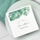 Celebre seu chá de panela de estilo com nosso guardanapo tropical, com o nome da noiva em tipografia elegante de script e uma borda superior de folhas de palma monstera em tons de verde. Adicione facilmente seu texto personalizado usando os campos de modelo fornecidos. Para mais designs de temas lúdicos como este, visite www.zazzle.com/dotellabelle. Cada guardanapo apresenta uma única arte aquática de Victoria Grigaliunas do Do Tell A Belle, acrescentando um toque especial à sua celebração.