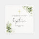Este guardanapo de batismo com folhas de verde botânico elegante pode ser personalizado com suas informações em tipografia chic. Concebido por Thisisnotme©