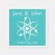 Crie um olhar coordenado para o seu casamento geeky ou evento especial com estes guardanapos, com um fundo turquesa brilhante decorado com um modelo planetário branco do átomo e algum texto de amostra que você possa personalizar para suas necessidades. Certifique-se de verificar os outros produtos das Forças Atrativas em Turquesa para criar uma procura verdadeiramente coordenada do seu evento.