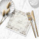 Os guardanapos de casamento elegantes em um estilo mais formal com um layout clássico de quadros de ouro e texto com uma borda ornamentado paisley. Adicione seus nomes nesta bela fonte de script e data de casamento em um serifa clássico com seu apelo tradicional. Procure ID767 para ver outras opções de cores para este design.