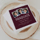 Estes guardanapos de festa de formatura apresentam uma colagem de três fotos quadradas personalizadas acima da palavra "formando" em tipografia branca esportiva sobre um fundo vermelho de burgundy. Adicione o nome do formando, a escola e o ano de classe abaixo na fonte sans serif.