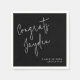 Simples e divertido roteiro de felicitações modernas sobre fundo negro, guardanapos personalizados pelo excelente para festas de formatura.