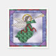 Linda design de Natal tradicional de um anjo de efeito fosco vestindo uma manga verde amarrada com uma fita vermelha tocando uma trompete, com asas brancas bonito, com um lindo fundo de fosco lilás e uma borda externa de verde e vermelho. Um guardanapo adorável para festas de férias. Não há texto nesta design. Este é um design de Natal moderno, sofisticado e moderno, adequado para eventos familiares e corporativos.
