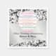 Este guardanapo descartável de aniversário de 25 apresenta uma cor damasco de espiral preta como fundo, uma faixa de ondas de cinza prateada através do centro e um quadro fotográfico personalizável e oval. O texto personalizável permite que você adicione os nomes do casal e sua data de casamento.