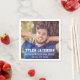 Celebre seu formando de segundo grau com guardanapos de festa de formatura fotográfica. Personalize com um retrato de mais velho e preencha o texto personalizado com seu nome de formando e escola. O design de sobreposição de texto/listras branco pode ser personalizado para qualquer cor e reposicionado, se necessário.