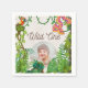Adicione o toque final ao Wild One da sua pequena com guardanapos de fotos coordenados, com folhagem brilhante, animais e uma fotografia adorável do convidado de honra